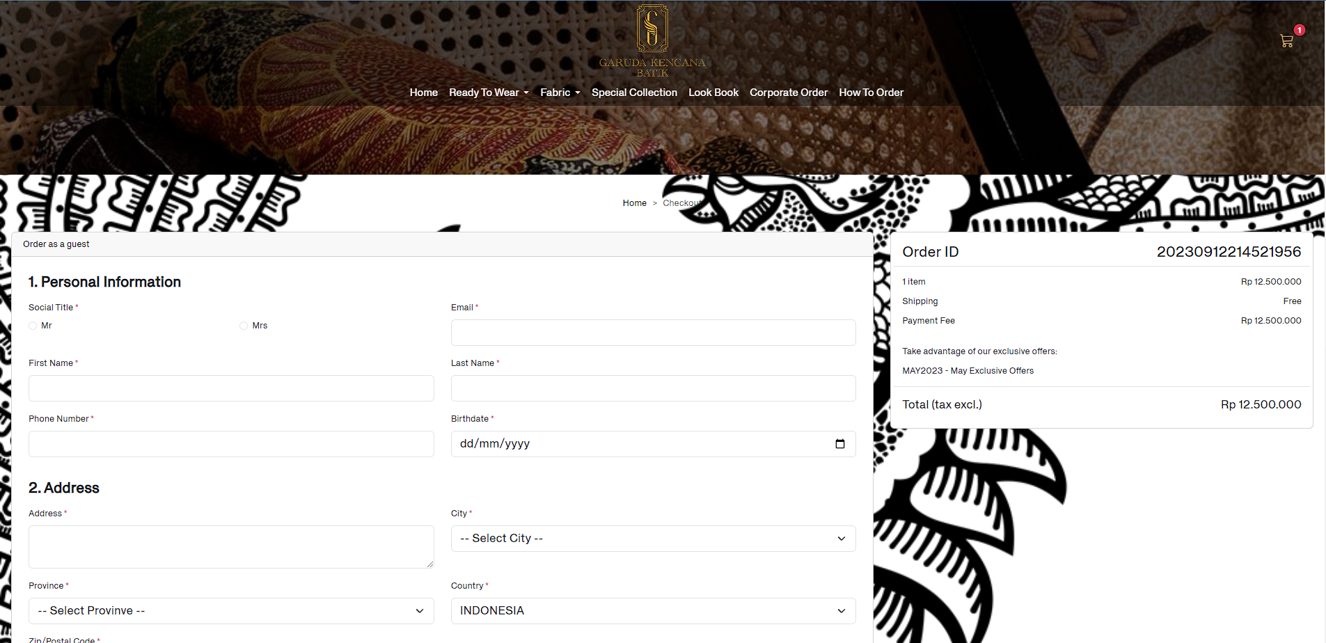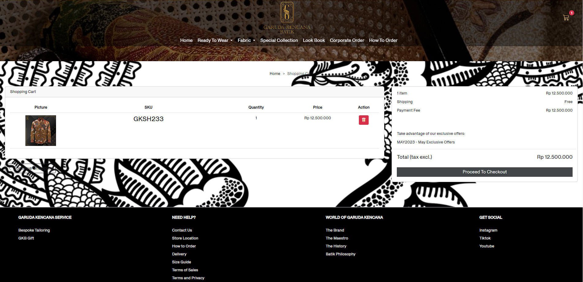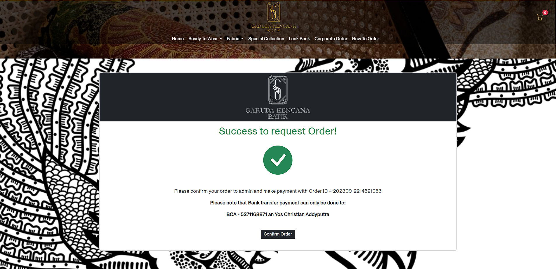 This is one of the projects of Garuda Kencana Batik which is a form of website selling their products online with a payment system that still uses manual transfer transactions.